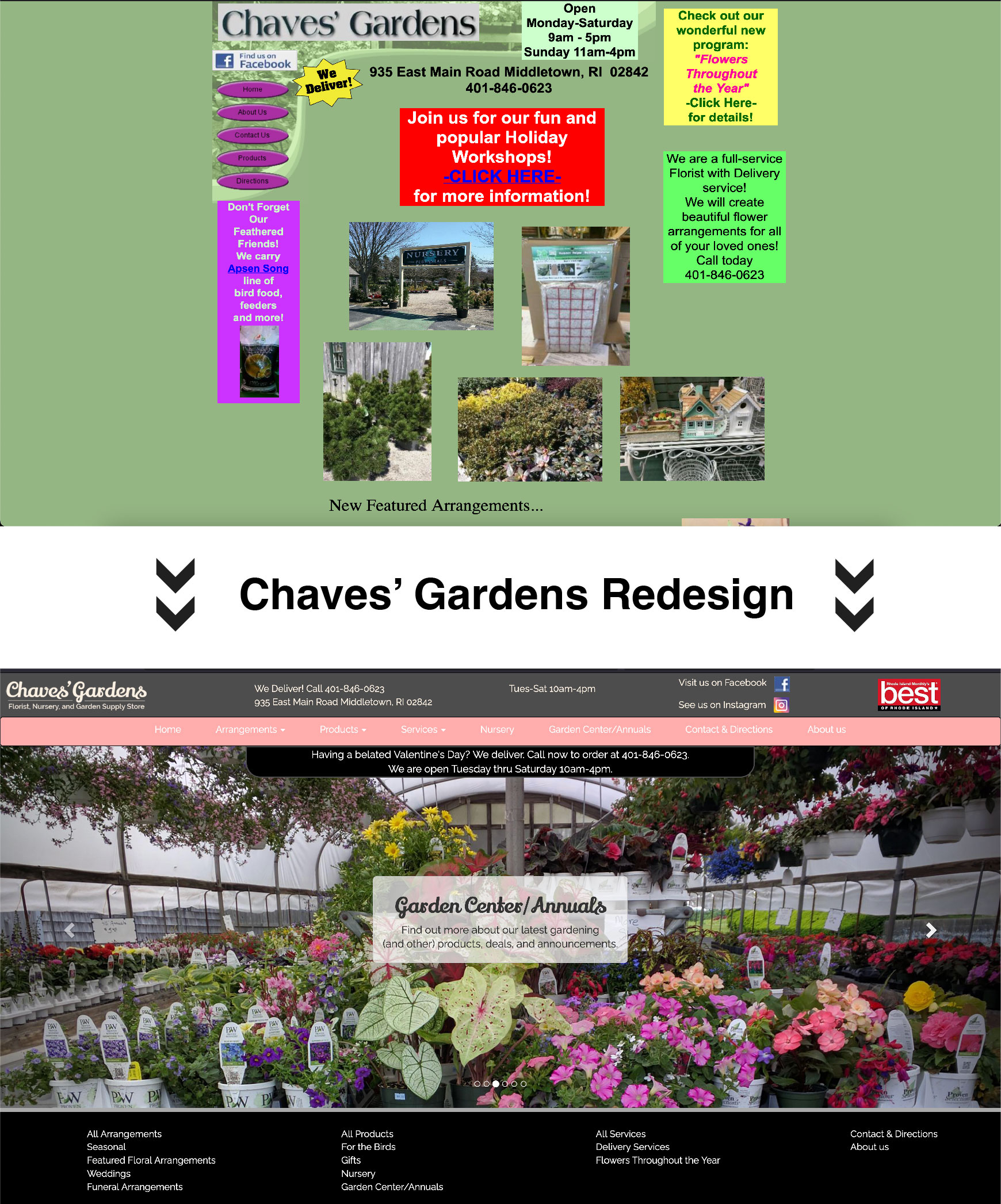 Hello, my name is Kelly Beshara-Flynn. I am a Graphic Designer, User Experience Designer, and Front-End Web Developer. I am well versed in Adobe Photoshop, Illustrator, and InDesign. I can design and develop responsive websites using HTML, CSS, Bootstrap, and JavaScript. I designed and developed this website and the website for Chave's Gardens. Please feel free to contact me or have a look at my portfolio below.
