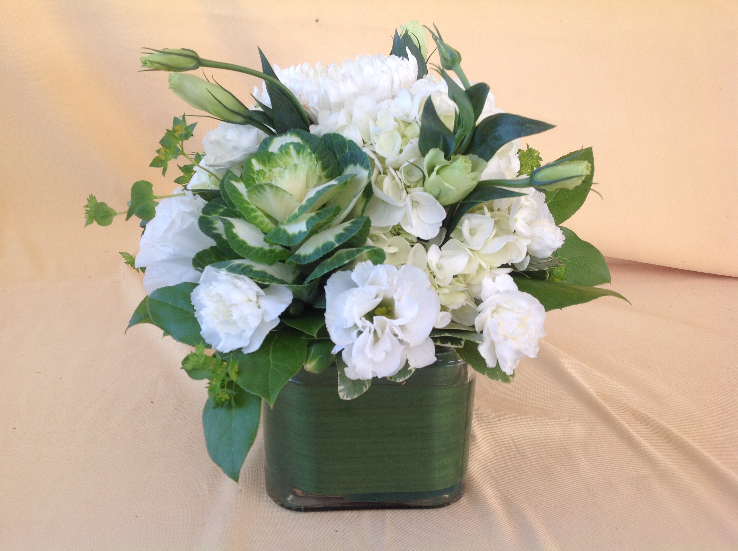 Classic assortment of white flowers in a cube container