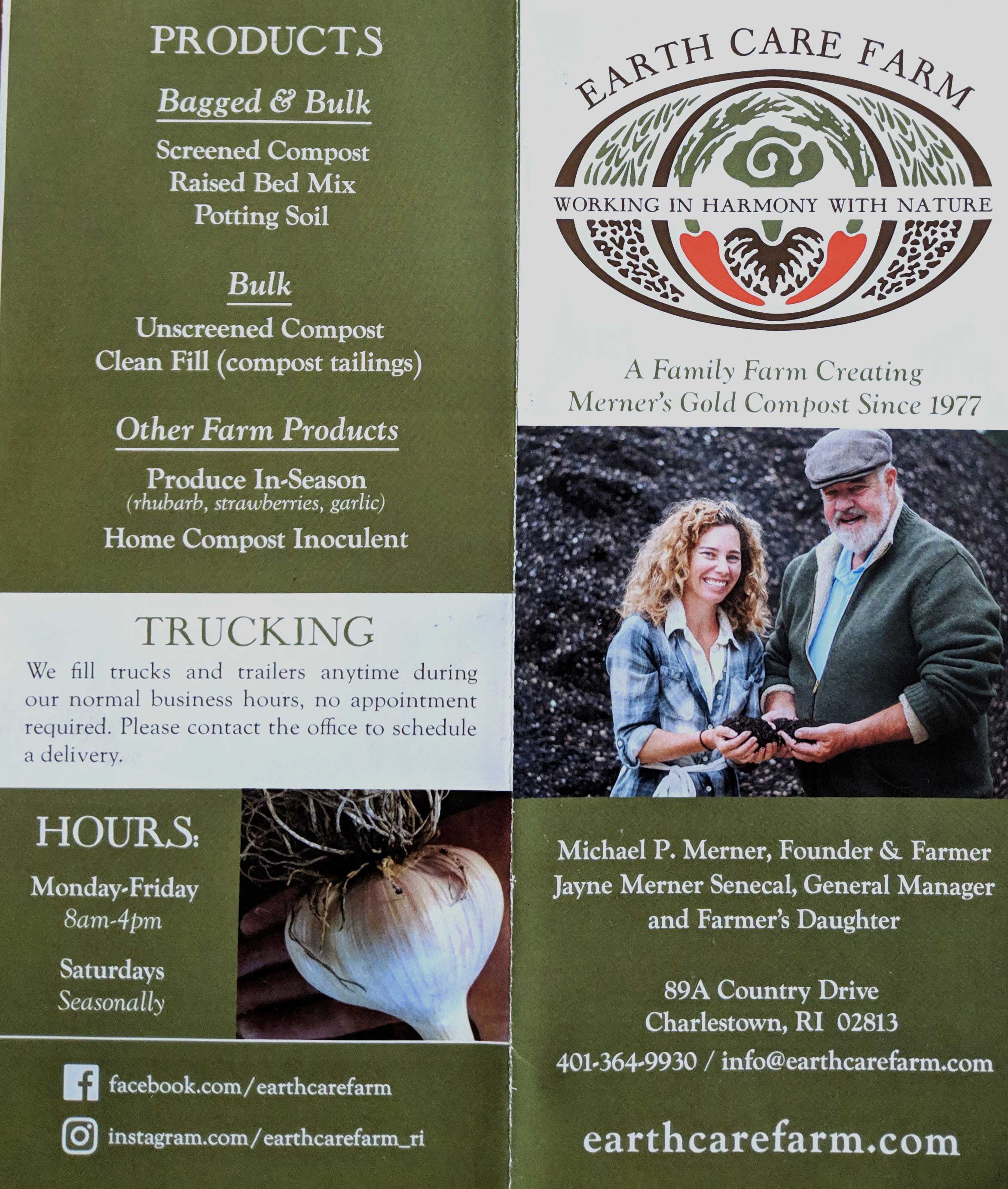 We now carry products from Earth Care Farm located in Charlestown RI. It is a father/daughter business in operation since 1977. Their organic methods have been featured in many publications including Rodale's "Organic Gardening", "The Natural Farmer" and "Mother Earth News.". Come in and talk to Lisa for more information.